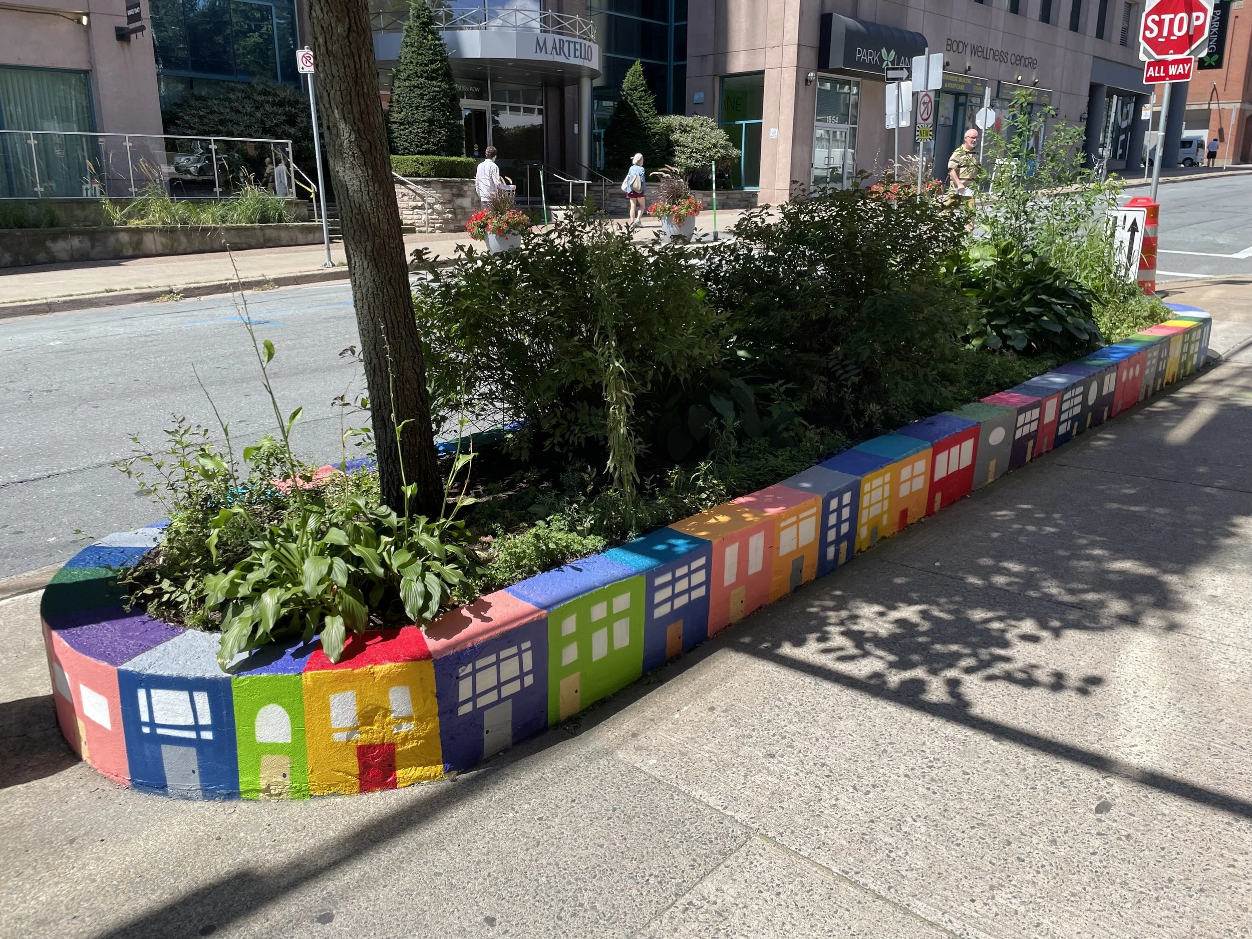 Spring Garden plantersOutdoor street planters painted in downtown Halifax, Nova ScotiaSpray paint and outdoor house paint